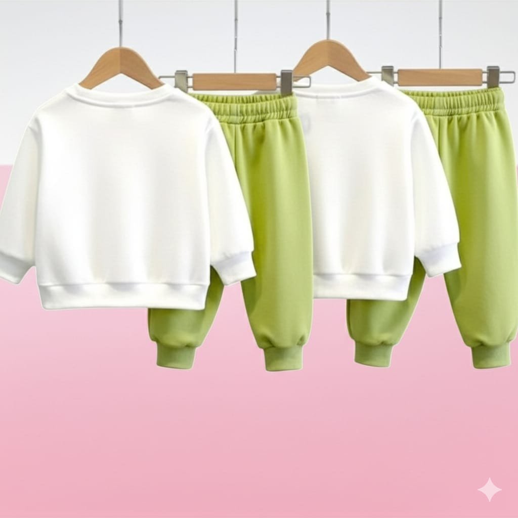 Celebrate the sweetest bond with the KicoWear “I Love Papa” White & Green Fleece 2-Piece Set. This cozy outfit features a soft white sweatshirt with a cute “I ❤️ Papa” print and matching green jogger pants with “I ❤️ Mom” text, making it perfect for both baby boys and girls.
