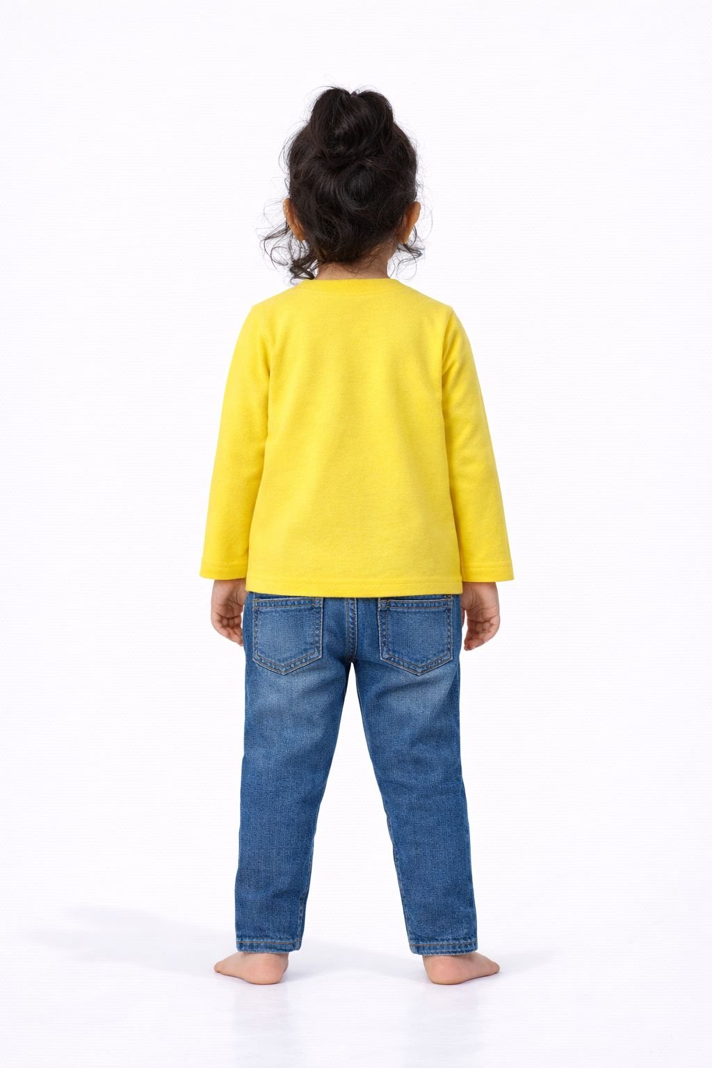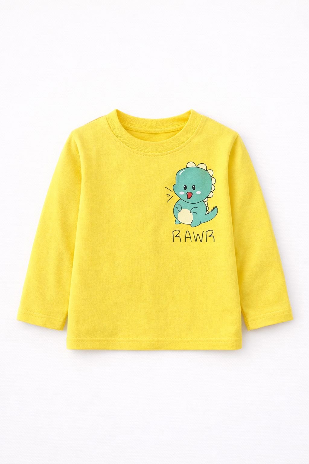 The vibrant yellow color adds brightness and positivity, while the cute dinosaur print makes the T-shirt attractive and fun for kids. The full sleeves provide extra coverage, making it suitable for all seasons and protecting your child’s skin during cooler weather.
