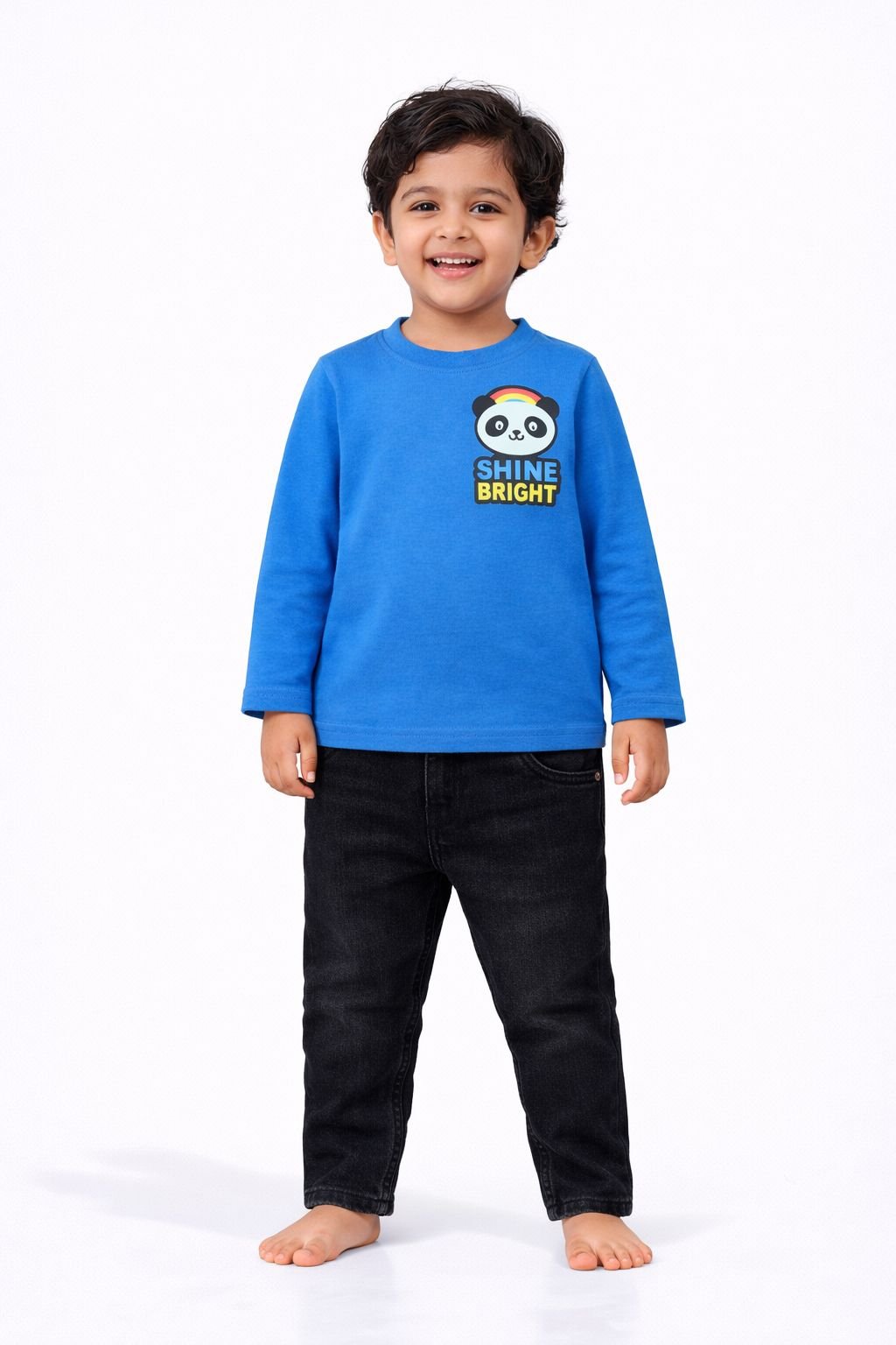 The bright blue color combined with the cute panda graphic and inspiring “Shine Bright” print adds a fun and stylish touch to your child’s outfit. This T-shirt is perfect for daily wear, casual outings, playtime, daycare, or home use. The breathable fabric helps keep your child cool and comfortable in all seasons.