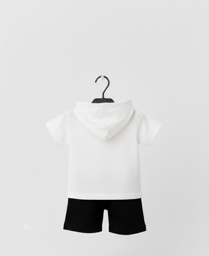 Set Includes: Printed T-Shirt + Matching Shorts + White Cap