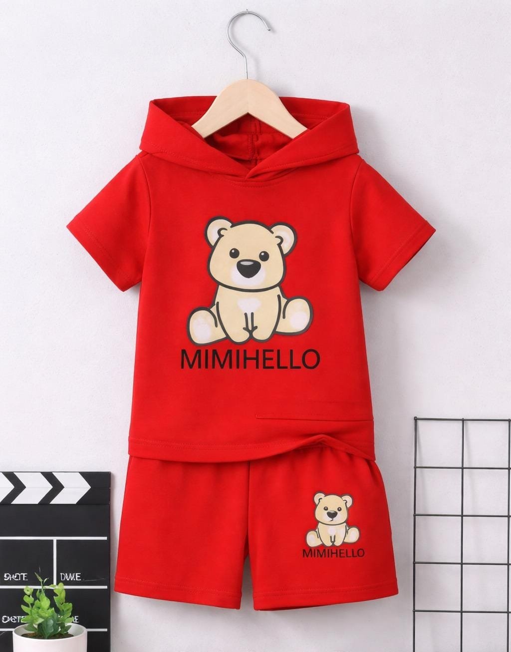 The hooded cap-style t-shirt adds a trendy and stylish touch, while also providing a relaxed and comfortable fit. The matching shorts come with a soft elastic waistband that ensures a secure yet gentle fit without causing irritation, allowing easy movement during playtime.